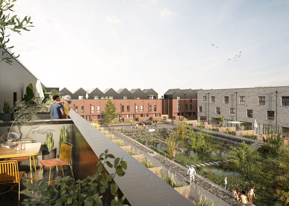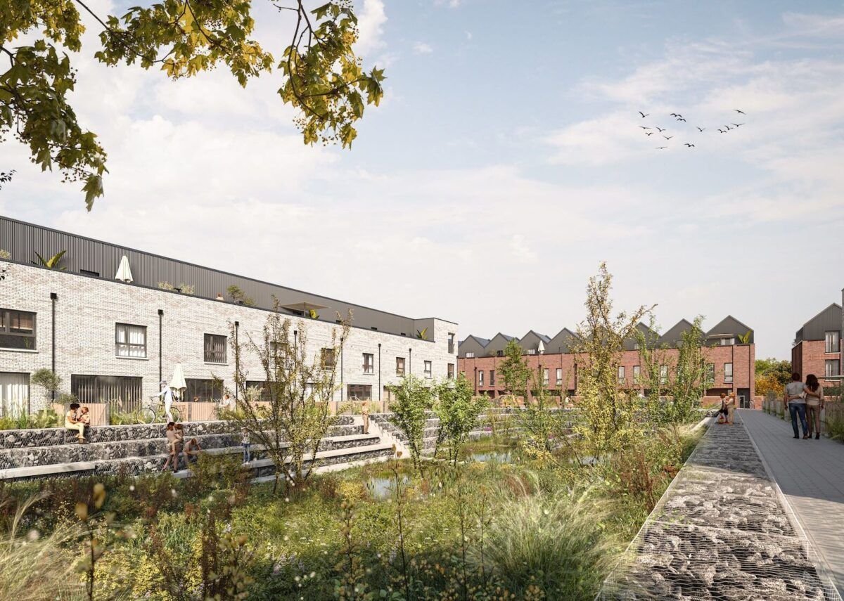 The masterplan envisages Dundashill as a new place to live defined by landscaped streets and paths that stitch together spaces for the new community to enjoy, from play areas, shared gardens and viewing platforms to street art murals and a new central square.